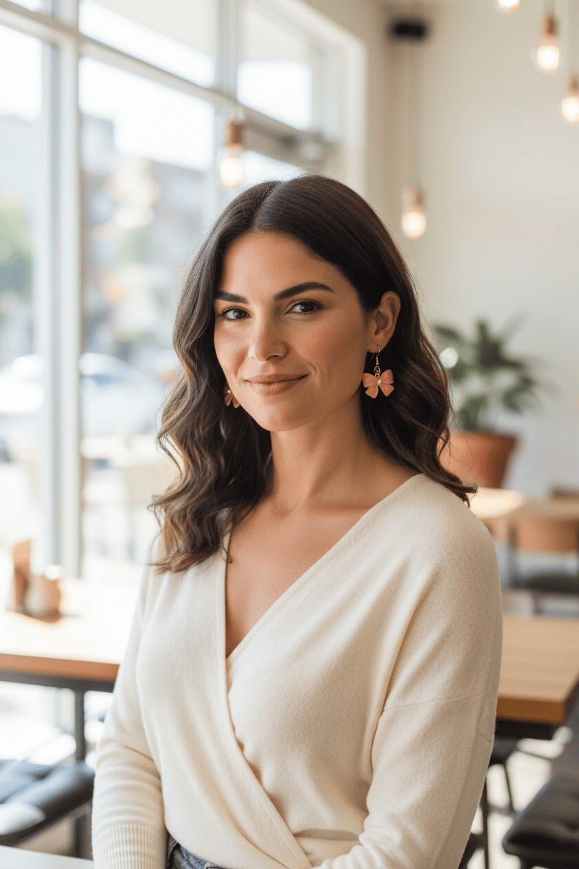 "Bows and Pearls" earrings are approximately 1.5 inches. This product was a handmade product.