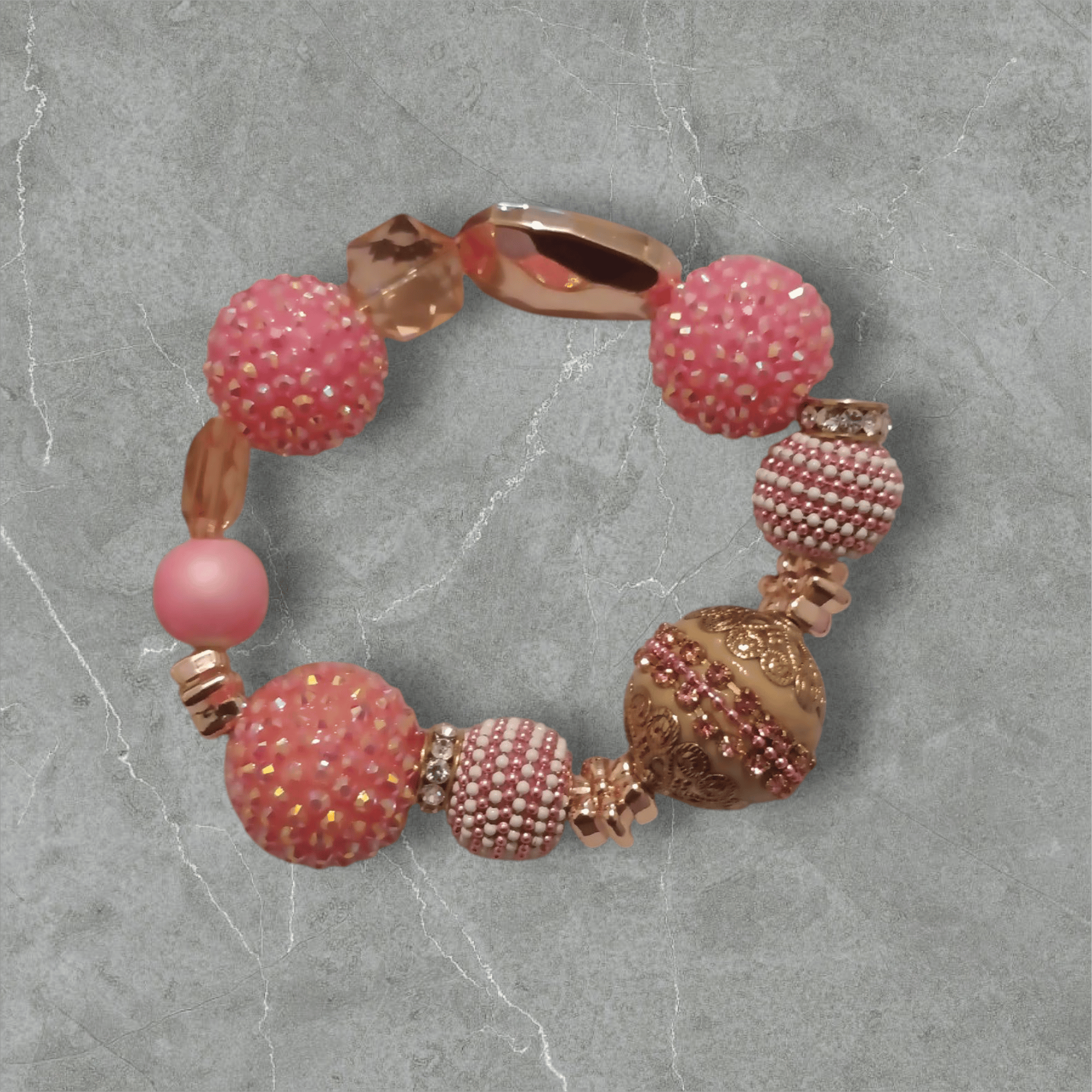 ✓ Over sized assorted pink and gold beads. ✓ Elastic beaded bracelet. ✓ Rhinestone pink and gold beads. ✓ Women jewelry