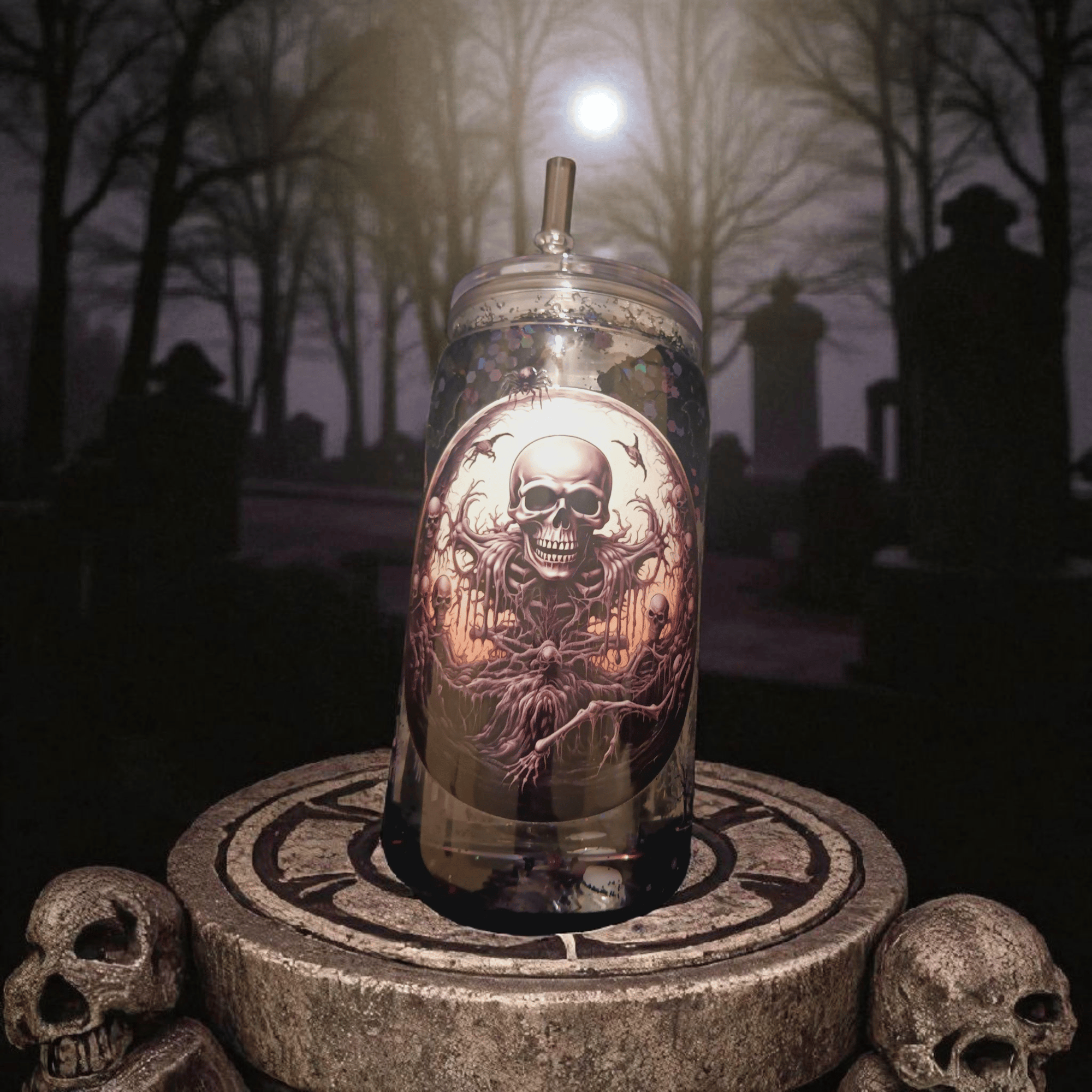 "Skeleton Lord of Underworld" is a special cup that displays the darkness of the underworld. Shake the cup and watch the black glitter shimmer.
