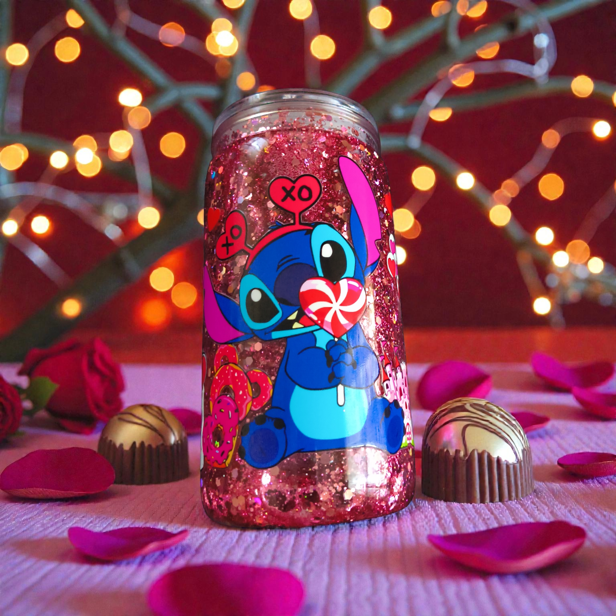 "Stitch Valentine's" is a cute way to tell someone you love them this Valentine's Day. This little guy displays an enjoyment of a candy treat.